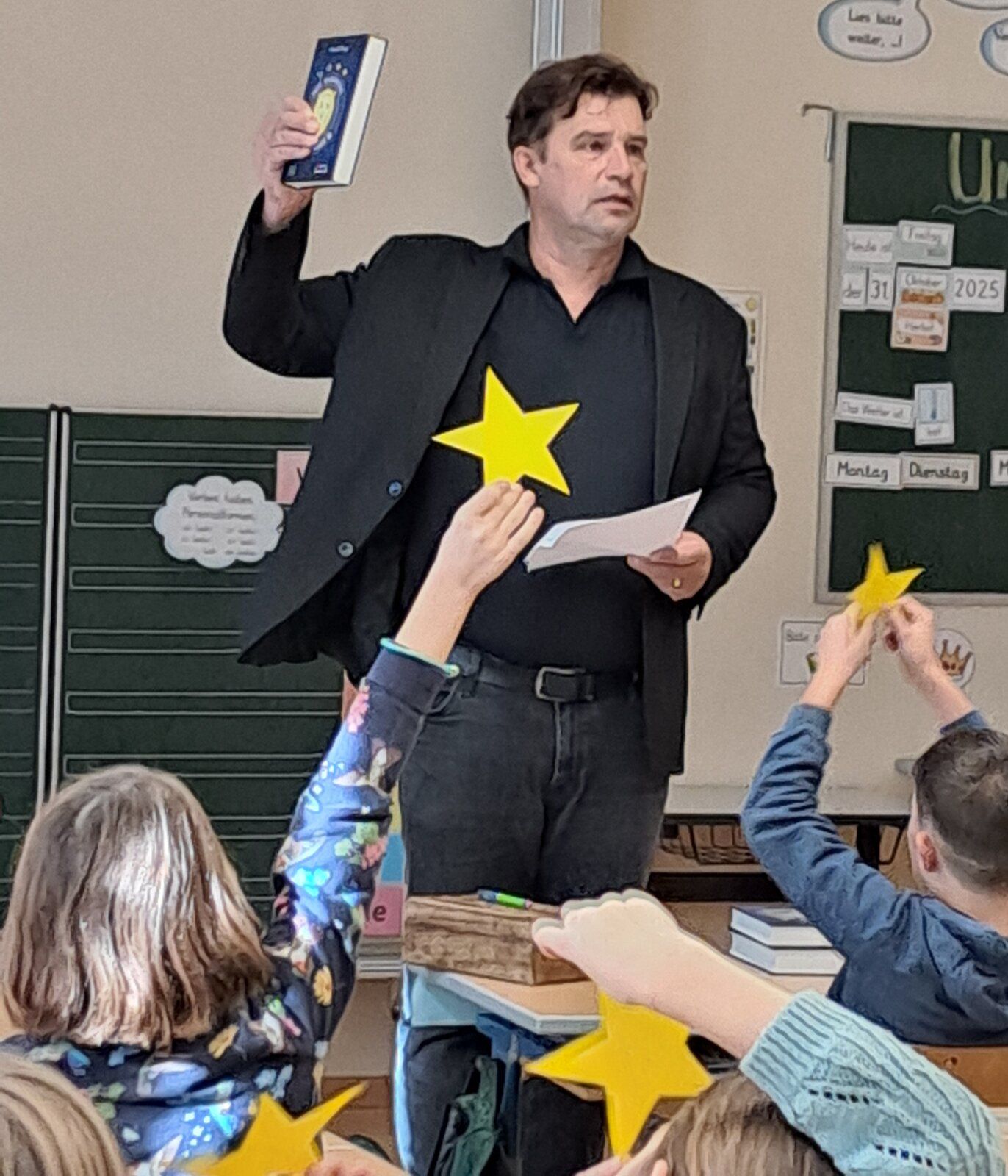 Spannende Geschichten aus eigener Feder hatte der Kinderbuchautor Armin Pongs mitgebracht in die Grundschule Postmünster.