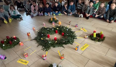 Am 1.Dezember fand in der Aula die alljährliche Adventskranzsegnung statt, die ganz im Zeichen des „Lichtes“ stand und von der 4. Klasse mit Frau Veith und Kaplan Stefan Jell vorbereitet wurde.
