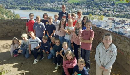 Am 25.9. brach die Klasse 4 mit dem Bus nach Passau auf. Nach einer kurzen Begehung der Burg und dem traumhaften Ausblick von dort oben auf die Passauer Altstadt und die Flüsse Donau, Inn und Ilz gab es in der Jugendherberge erst einmal eine Stärkung.