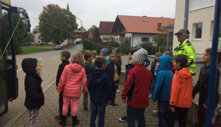 Am 9. Oktober 2017 besuchte uns Herr Prähofer an der Schule mit seinem Bus. Die Kinder der 1. bis 4. Klasse absolvierten unter der fachmännischen Leitung Herrn Prähofers ein Bussicherheitstraining.