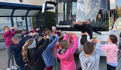 Am 06. Oktober 2022 nahmen auch die Kinder der vierten Klasse am alljährlichen Bustraining teil. Dieses Schuljahr bereitete Herr Prähofer aus Tann eindrucksvoll den toten Winkel, also jene Bereiche außerhalb des Fahrzeugs, die der Fahrer trotz der Spiegel nicht einsehen kann, für uns vor.