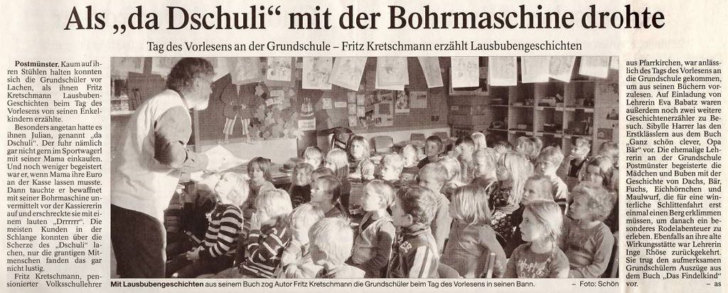 Postmünster. Kaum auf ihren Stühlen halten konnten sich die Grundschüler vor Lachen, als ihnen Fritz Kretschmann Lausbuben-Geschichten beim Tag des Vorlesens von seinen Enkelkindern erzählte.