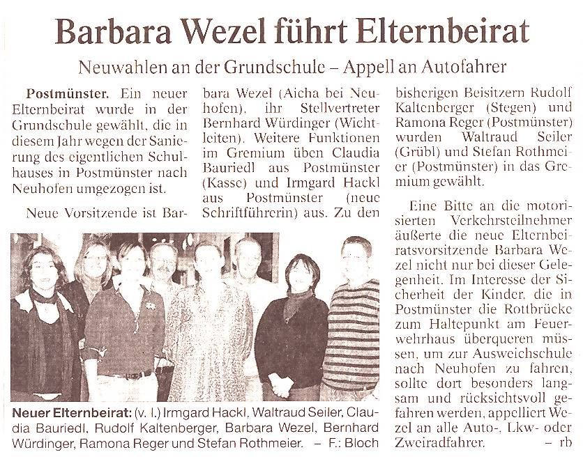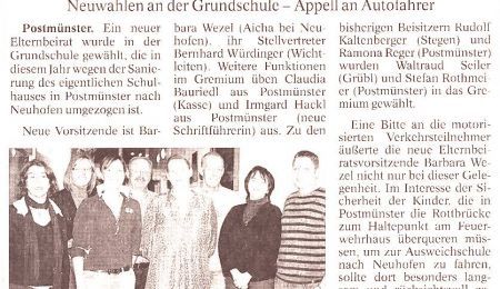 Postmünster. Ein neuer Elternbeirat wurde in der Grundschule gewählt, die in diesem Jahr wegen der Sanierung des eigentlichen Schulhauses in Postmünster nach Neuhofen umgezogen ist.