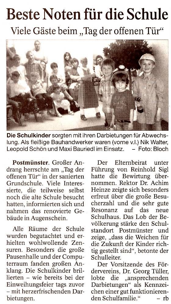 Postmünster. Großer Andrang herrschte am „Tag der offenen Tür“ in der sanierten Grundschule. Viele Interessierte, die teilweise selbst noch die alte Schule besucht hatten, informierten sich und nahmen das renovierte Gebäude in Augenschein.