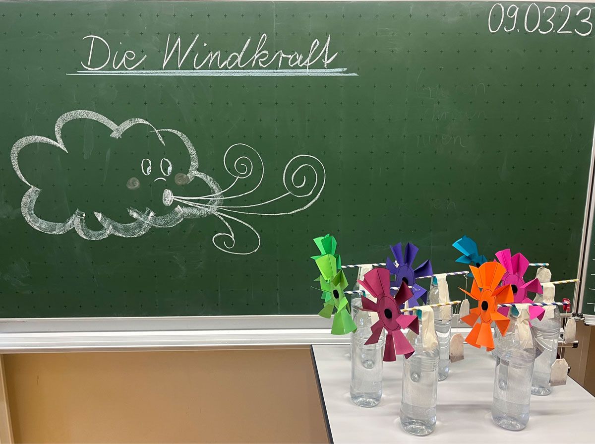 Durch das Basteln eigener Windräder, entdecken die Schüler*innen, wie durch die Kraft des Windes (z.B. durch das eigene Pusten) die Flügel der Windräder ganz leicht gedreht werden können. Wenn man zusätzlich einen Teebeutel am Windrad befestigt, funktioniert es wie bei einem Lastenaufzug und der Tee wird nach oben gezogen. Was der Wind so alles kann!