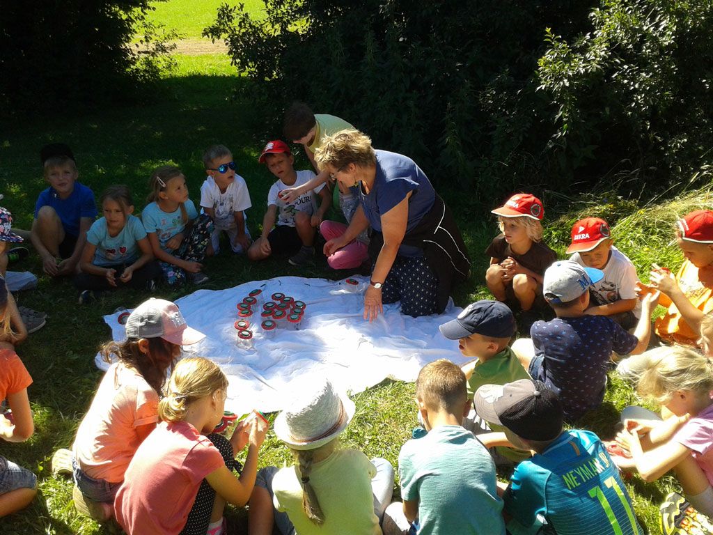 Dort erwartete die Kinder ein abwechslungsreiches Programm. Sie konnten Wiesenblumen pflücken und bestimmen, mit Becherlupen Wiesentiere fangen und bestaunen und einige Wiesenbrüter kennenlernen.