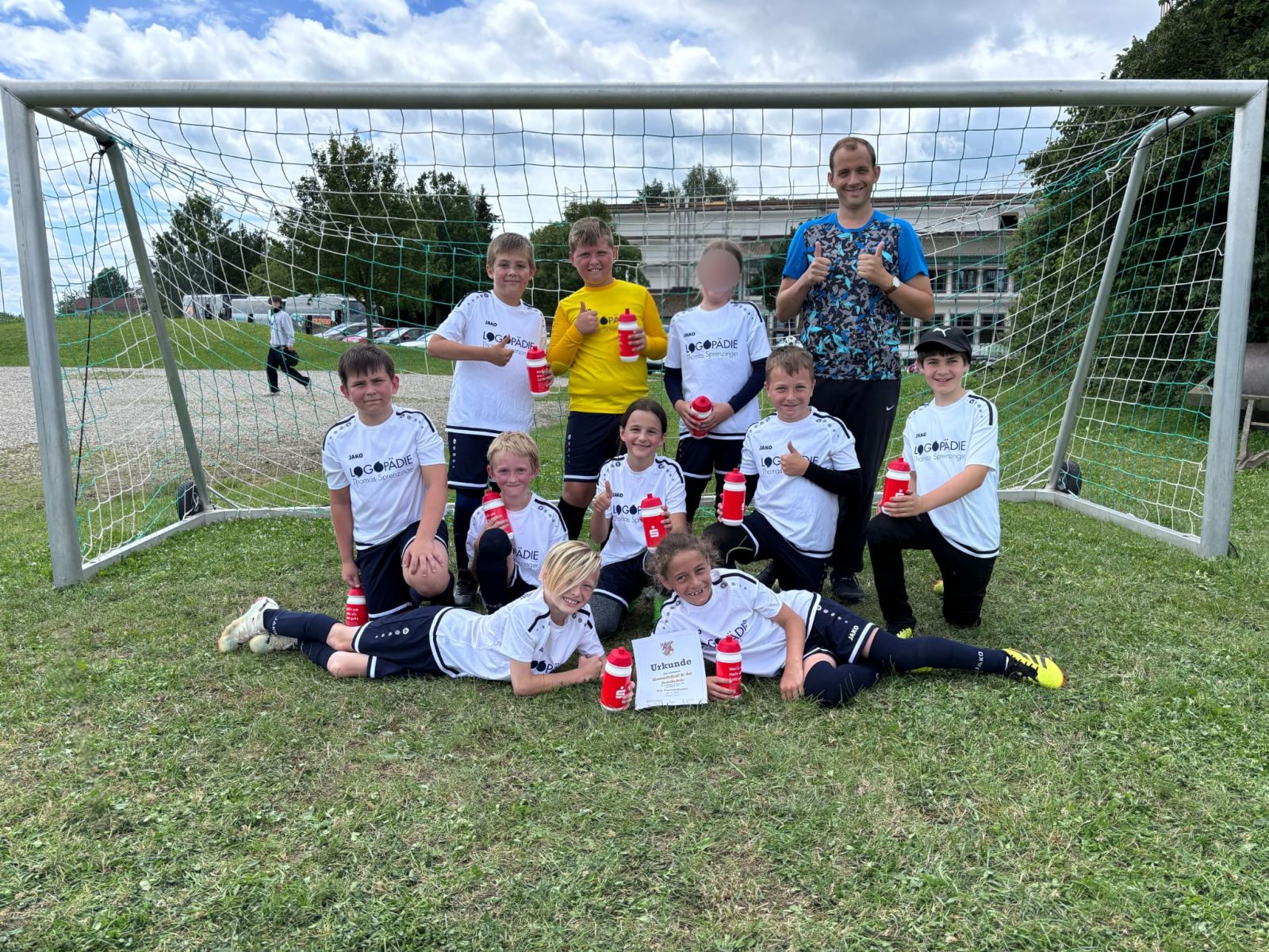Mit ausgewählten Kindern fuhren wir am 04.07.2024 zum Fußballturnier. Nach einem kurzen Aufwärmtraining bestritten die kleinen Fußballprofis das erste Spiel gegen Reut, das 0:0 endete. Nach einer kurzen Pause spielten wir gegen bärenstarke Malgersdorfer - 0:4! Dieser Gegner wurde am Ende übrigens Zweiter in der Gesamtwertung.
