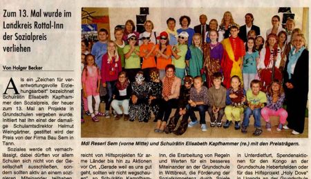 Als ein „Zeichen für verantwortungsvolle Erziehungsarbeit“ bezeichnet Schulrätin Elisabeth Kapfhammer den Sozialpreis, der heuer zum 18. Mal an Projekte in Grundschulen vergeben wurde. Initiert hat ihn einst der damalige Schulamtsdirektor Helmut Weingärtner, gestiftet wird der Preis von der Firma Bau Sem in Tann.