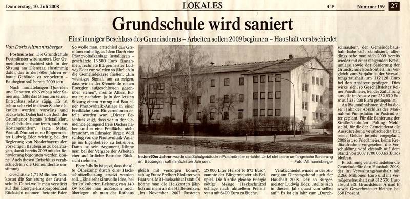 Postmünster. Die Grundschule Postmünster wird saniert. Der Gemeinderat entschied sich am Dienstag einstimmig dafür, das in den 60er Jahren erbaute Gebäude zu renovieren - Baubeginn soll bereits 2009 sein.