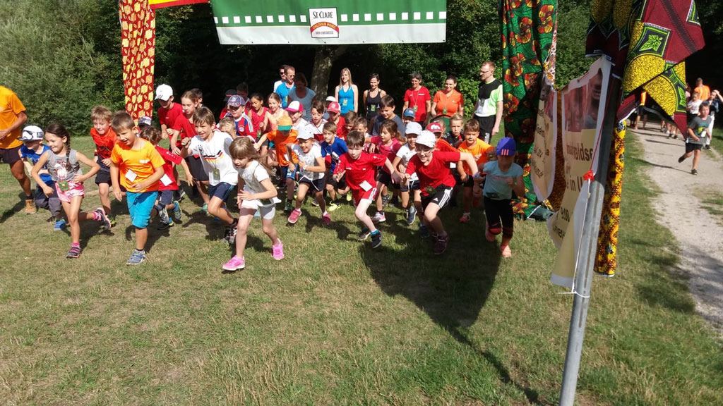 Höchst motiviert und gespannt, was sie erwartet, machten sich 41 Schülerinnen und Schüler mit den Lehrern Herr Dr. Heinze und Frau Hager und einigen Eltern am 04.07.2018 auf an den Waldsee nach Kirchdorf zum großen Spendenlauf für die Kinder vom Kinderheim St. Clare in Uganda.