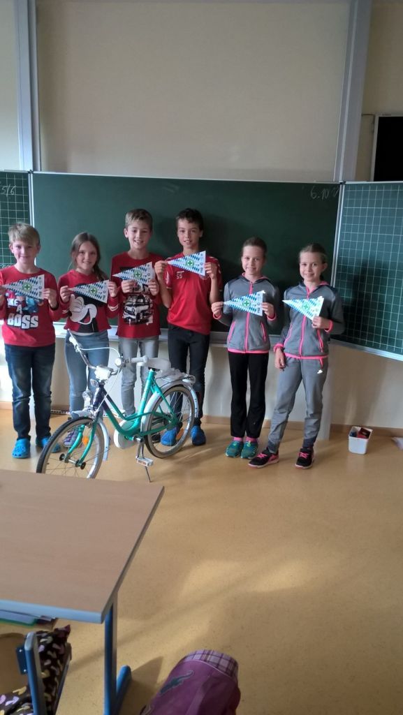 Anfang Oktober absolvierte die 4. Klasse ihre Radfahrausbildung. Nach viel Theorie ging es hinaus in den Verkehrsgarten, wo die Schüler an zwei Übungstagen das erlernte Wissen in die Praxis umsetzen durften. Am Prüfungstag bewiesen die Kinder im Einzel- und Gruppenfahren, dass sie die Verkehrsregeln beherrschen. Zwei Eltern halfen zusammen mit unserem Verkehrserzieher Herrn Sengstock die Fahrt im Realverkehr in Gruppen sicher durchzuführen. Mit einer bestandenen Fahrradprüfung dürfen sich nun alle Schüler das Zeichen für einen „geprüften Radfahrer“ an das Rad montieren. Für sieben Kinder gab es sogar einen Ehrenwimpel für besondere Leistungen. Herzlichen Glückwunsch für alle!
