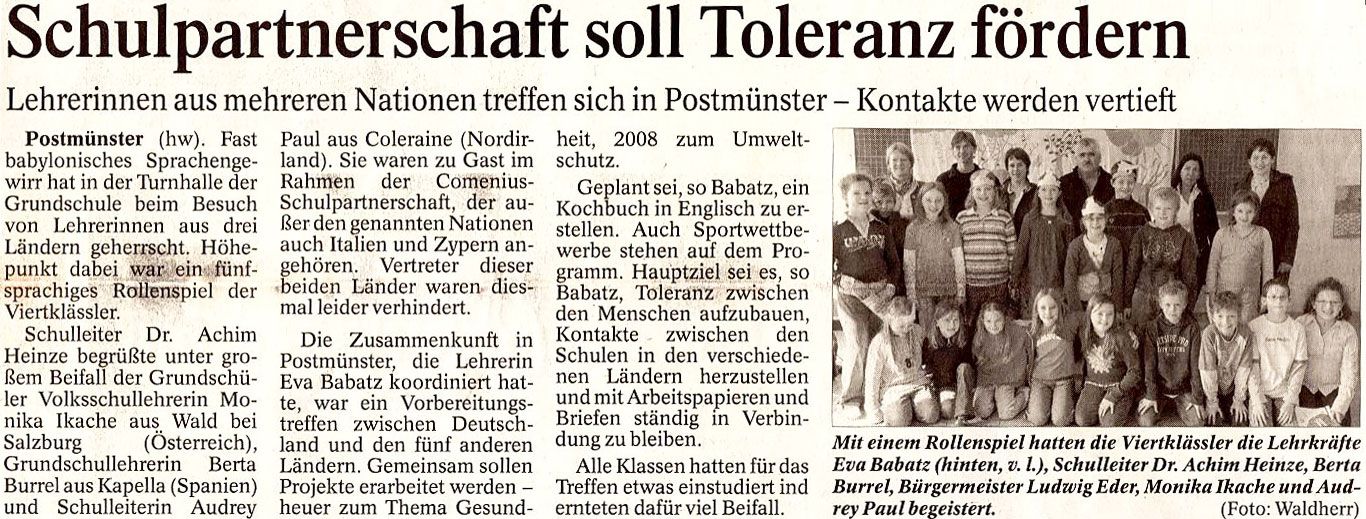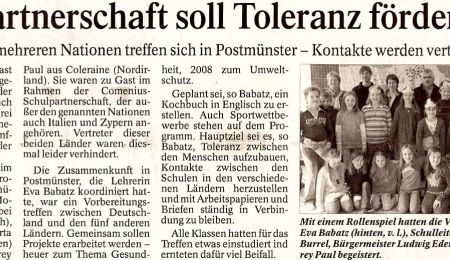 Die Zusammenkunft in Postmünster, die Lehrerin Eva Babatz koordiniert hatte, war ein Vorbereitungstreffen zwischen Deutschland und den fünf anderen Ländern. Gemeinsam sollen Projekte erarbeitet werden — heuer zum Thema Gesundheit, 2008 zum Umweltschutz.