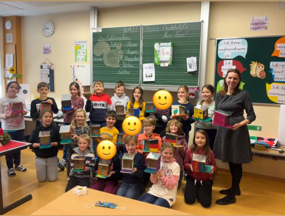 Um den possierlichen Tierchen zu helfen, wollten wir auch einen wertvollen Beitrag für mehr Artenvielfalt leisten. Deshalb haben wir das Projekt „Oachkatzl‘s Nuss- Bar“ ins Leben gerufen! Alle 25 Kinder der 3. Klasse gestalteten ganz individuell und überaus kreativ ihr eigenes Futterhaus. Die Ergebnisse können sich wirklich sehen lassen! Und vielleicht bedient sich sogar das eine oder andere Oachkatzl an unserer Nuss-Bar…