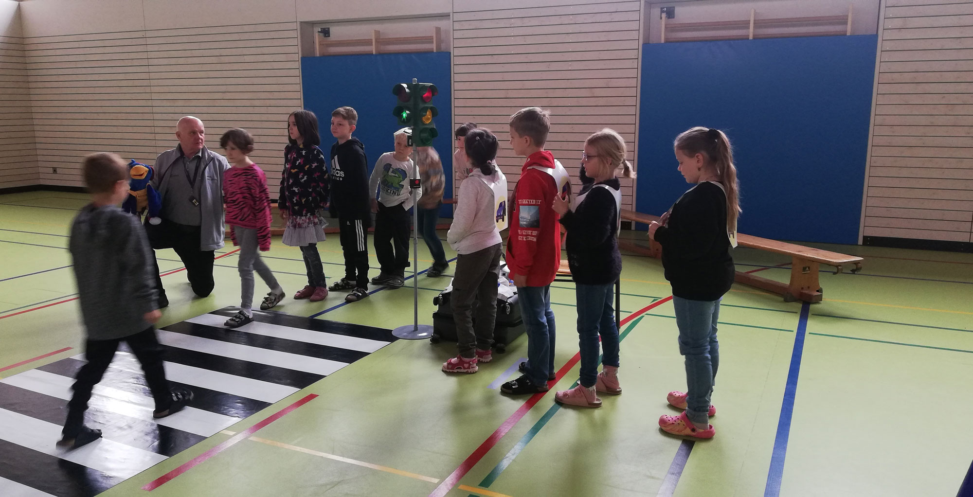Wie überquere ich als Fußgänger sicher die Straße? Diese Frage konnten die Schüler der 1. und 2. Klasse am 24.10. nicht nur theoretisch beantworten. Denn mit Hilfe der Handpuppe Adakus schulte Herr Ritzinger die Kinder beim Überqueren eines Fußgängerüberweges sowie an der Ampel. Jedes Kind durfte mehrmals in der Rolle eines Fußgängers und eines Autofahrers schlüpfen und das richtige Verhalten üben. Alle Kinder waren mit vollem Einsatz dabei!
