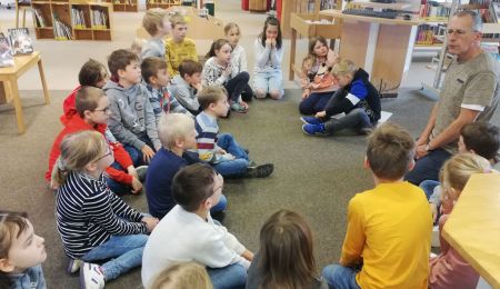 Am 24.4. bzw am 25.4. durften die 1. und 2. Klasse die Stadtbücherei Pfarrkirchen kennenlernen. Herr Kroneder, der Leiter der Bücherei, begrüßte uns herzlich im wunderschönen Dachgeschoss des Reiffenstuel-Hauses. Nachdem sich alle ein bisschen umsehen konnten, erklärte uns Herr Kroneder, dass man sich hier kostenlos Bücher und andere Medien ausleihen kann. Es machte uns mit den Regeln der Bücherei bekannt und verzauberte anschließend alle in Bücher. Wir bekamen die Aufgabe, uns nach dem ABC geordnet aufzustellen, was auch reibungslos klappte. So wurde klar, wie ein Buch in den vielen Regalen gefunden werden kann. Herr Kroneder zeigte uns zwei weitere Ebenen der Bücherei, wo unter anderem in Wohnzimmeratmosphäre in Büchern geschmökert werden kann. Angeregt durch diesen Büchereibesuch wollten einige Kinder mit ihren Eltern wiederkommen und sich einen Büchereiausweis ausstellen lassen. Eine gelungene Unternehmung!