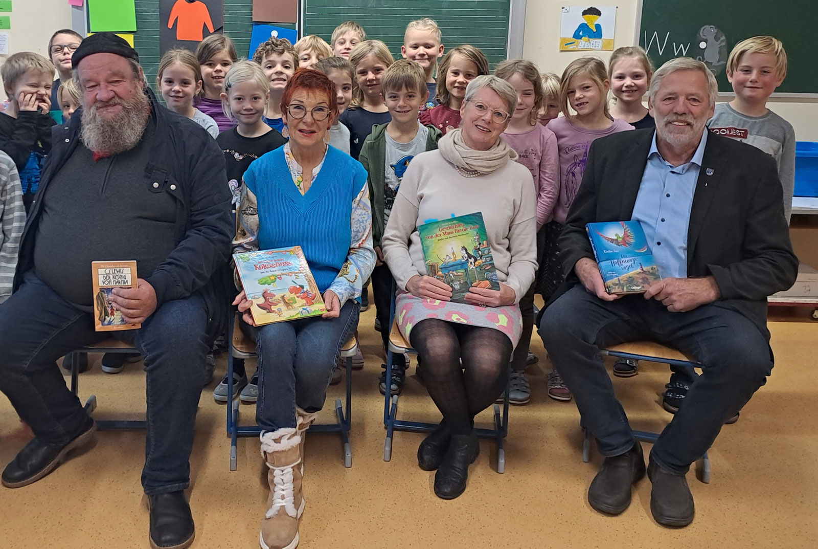 Die Vorleser motivierten die Kinder mit ihrem Vortrag zum Weiterlesen. Rektor Dr. Achim Heinze und Organisatorin Irene Drasch bedankten sich bei ihnen für ihre Unterstützung des Leseunterrichts, der von großer Bedeutung für die Schüler ist.